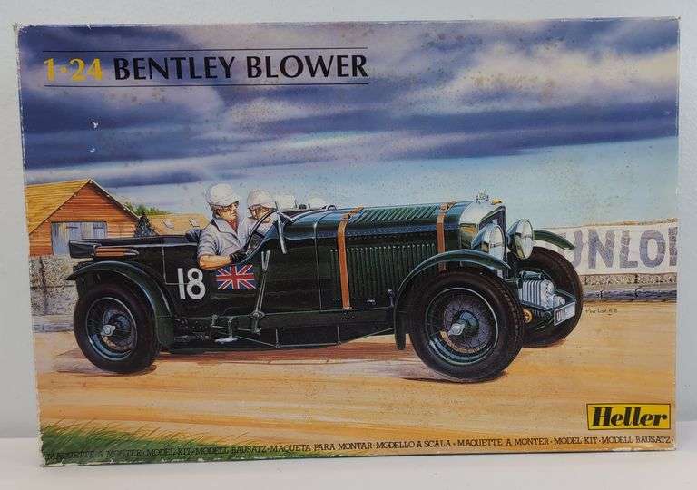 This listing is for a Heller 80731 1:24 scale model kit of the Bentley Blower. The model kit appears to be complete with the plastic parts still on their sprues. Instructions and decals are included. Box lid is slightly concaved, some signs of storage that should wipe off. Box is otherwise bright, clean, square and solid with a little very light wear to some edges.