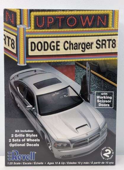 Revell 85-2025 1:25 scale model kit of a Dodge Charger SRT8. Kit is Mint factory sealed, overwrap is untorn. Box lid is slightly concave/warped.