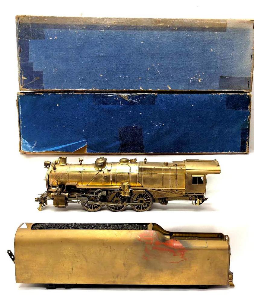 Description2-Rail brass O scale 4-6-2/2-8-2 parts to start construction of a locomotive and tender. Boiler, cab, firebox front casting, tender sides, cast frame, all are in brass. Cast metal disc included, boiler front? Box stated some parts were Adams. Please view the photos of the items in this lot carefully as they are being sold as they are shown in our photos with NO returns or refunds.