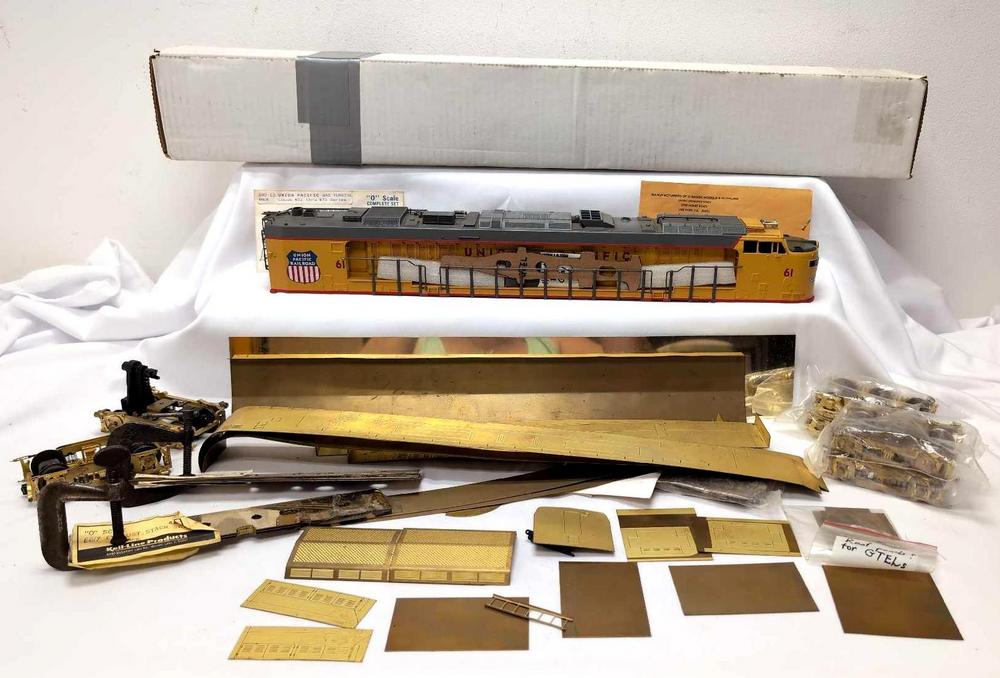 Description2-Rail brass O scale Union Pacific UP GTEL Veranda X61 gas turbine electric locomotive, plastic shell with sheet brass frame, sheet brass parts, brass truck assemblies, brass trim and parts. AAR power trucks have Weaver chain drive transmissions. Shell should clean C7. Please view the photos of the items in this lot carefully as they are being sold as they are shown in our photos with NO returns or refunds.