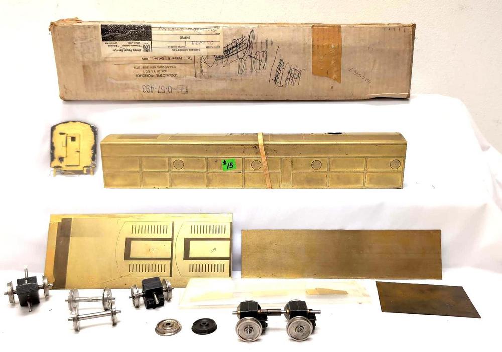 Description2-Rail brass O scale Loco Workshop LW E-8B E9b unassembled body, Ajin powered wheel sets, inspirational photographs of NYC 4085, brass body ends, sheet brass parts, literature and mechanical drawings, in original box. Please view the photos of the items in this lot carefully as they are being sold as they are shown in our photos with NO returns or refunds.