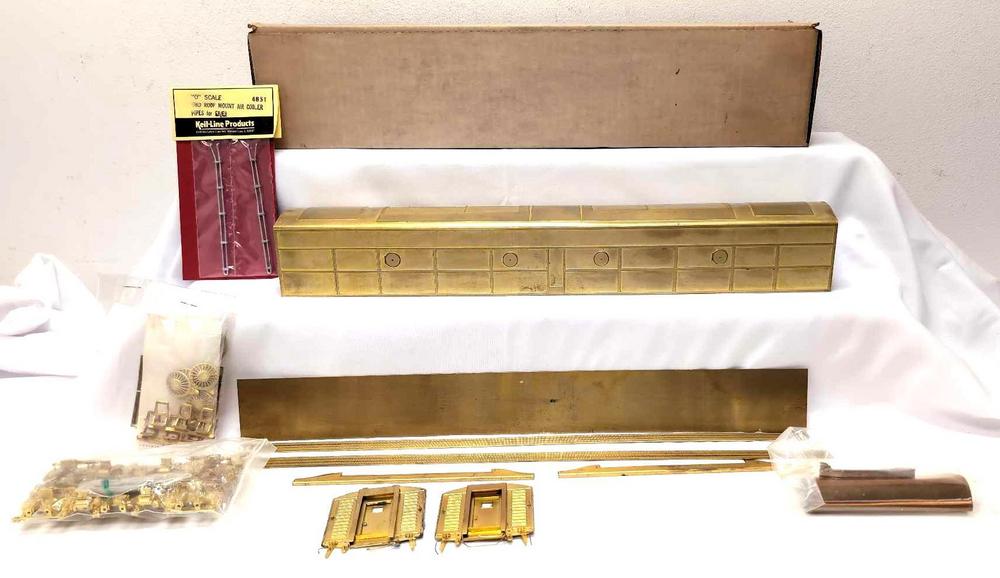 Description2-Rail brass O scale Loco Workshop LW E-8B or E-9b pristine kit unassembled, parts in bags, OMI truck frame assemblies, mechanical drawings, inspirational material included. Please view the photos of the items in this lot carefully as they are being sold as they are shown in our photos with NO returns or refunds.