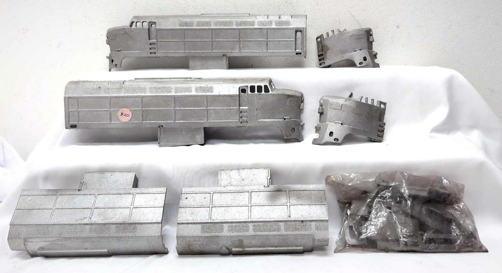 Description2-Rail O scale Locomotive Workshop freight Shark diesel locomotive units, unbuilt kits. Box end stated: L.W. Freight Shark 1 complete body 1 cut up body, shell and truck sides minus 1 pr trucks. Very nice clean castings, non-magnetic metal. No literature or pictures. Please view the photos of the items in this lot carefully as they are being sold as they are shown in our photos with NO returns or refunds.