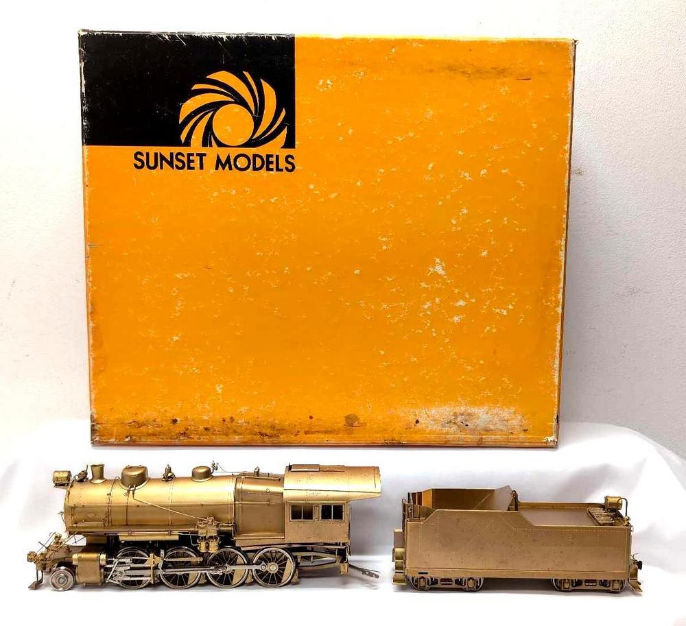 Description2-Rail brass O Scale Sunset Models Pennsylvania PRR H8/9 2-8-0 steam locomotive and tender, run time on wheels. Train has some tarnish to finish here and there. Train has illumination in headlight, no illumination in backup light. Excellent candidate for paint and decals. Box shows mild wear and storage discolorations. Please view the photos of the items in this lot carefully as they are being sold as they are shown in our photos with NO returns or refunds.