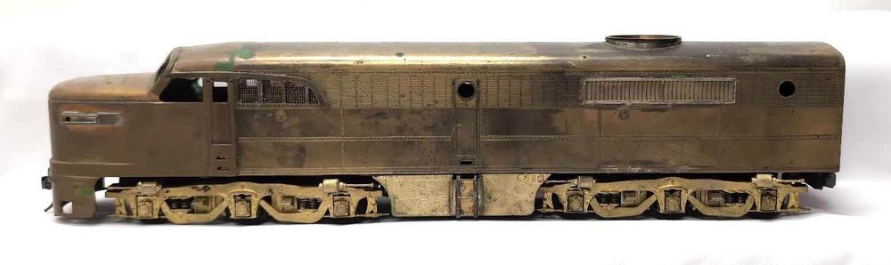 Description2-Rail brass O Scale Locomotive Workshop? Alco PA-1 diesel locomotive A unit, nicely built with some trim and details, single can motor, no illumination. Loose trim pieces included. Wheels and drive train show run time. Please view the photos of the items in this lot carefully as they are being sold as they are shown in our photos with NO returns or refunds.