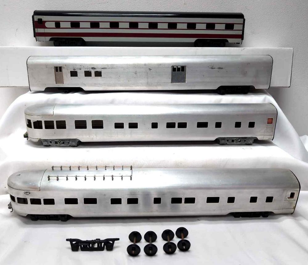 DescriptionFour 2-Rail aluminum O Scale passenger cars, two observation cars, coach and combination car. Trains have some detail trim. Some loose parts. Trains are unmarked and need to be finished, approximately 20 inches long. Please view the photos of the items in this lot carefully as they are being sold as they are shown in our photos with NO returns or refunds.