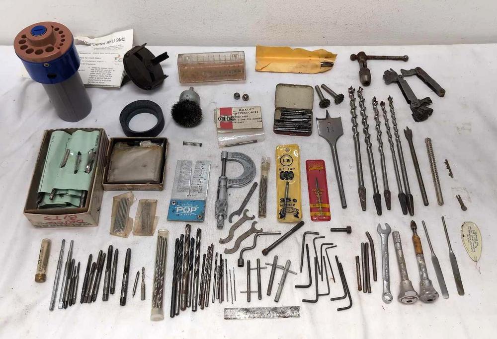 DescriptionDrill bits and other drill tools for modeling trains, cars, airplanes, ships and other hobbies. Various wood and metal drill bits. Bit sharpener (looks unused). Con-Cor metric tap in package. Tap handle. Thread gauge. Numerous micro sized drill bits in small vials. Please view the photos of the items in this lot carefully as they are being sold as they are shown in our photos with NO returns or refunds.