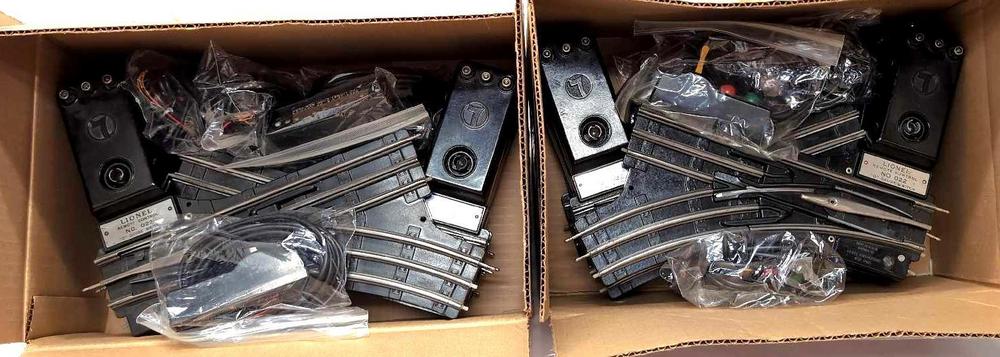 DescriptionSix pairs Postwar Lionel O Gauge 022 switches with controllers, lanterns and fixed voltage plugs. Reversed motors. Two controllers have no wires. Please view the photos of the items in this lot carefully as they are being sold as they are shown in our photos with NO returns or refunds.