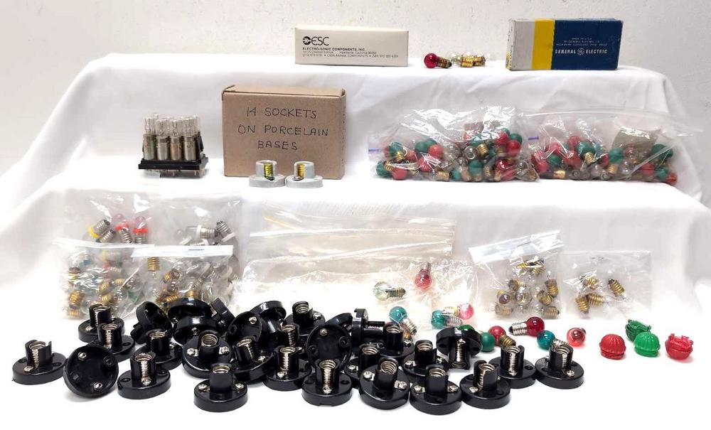 DescriptionScrew base bulbs, bayonet base lamps, lamp sockets on plastic and porcelain bases, LED bulbs. Some are red, green and clear. Used and new. Please view the photos of the items in this lot carefully as they are being sold as they are shown in our photos with NO returns or refunds.
