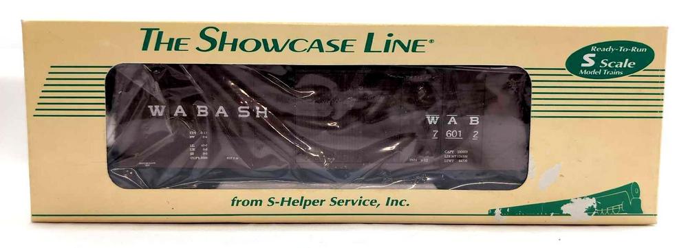 Modern Era S-Helper S Gauge 00147 SS Xm Wabash Box Car number 76012 in original box, unrun C9-10, with literature. Box shows a little surface wear to front panel, fading to an end flap, very square and very solid.