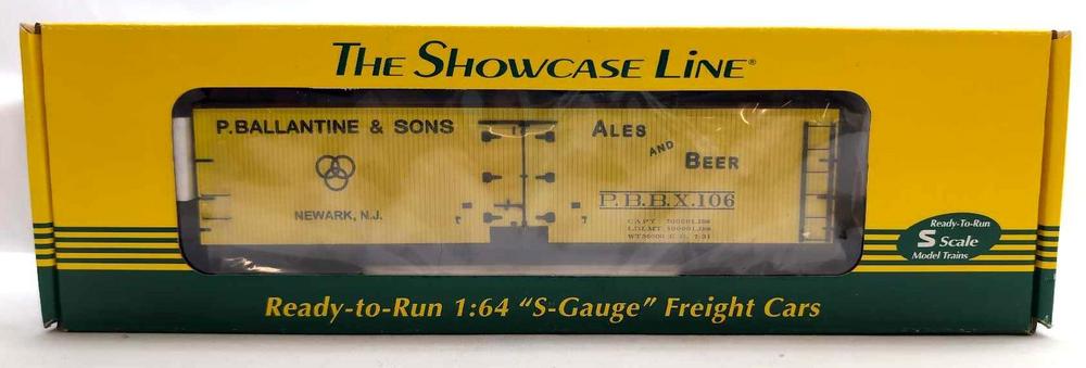 Modern Era S-Helper S Gauge 00516 Ballantine Beer PBBX reefer car in original box with literature, unrun C9-10. Box shows little wear, very square and very solid.