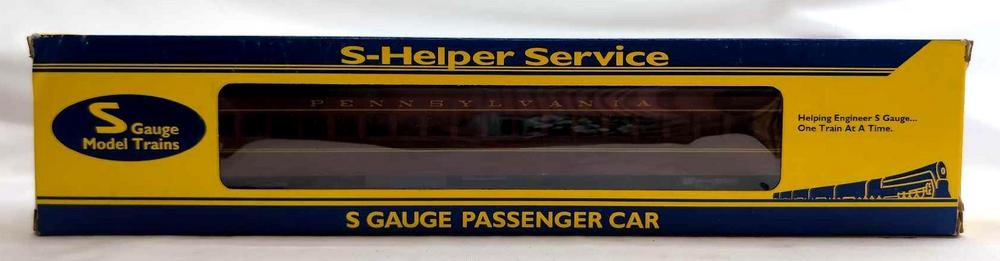 Modern Era S-Helper S Gauge PRR Pennsylvania passenger coach car in original box, C8 very light run time. Box shows some corner dings, very square and very solid.