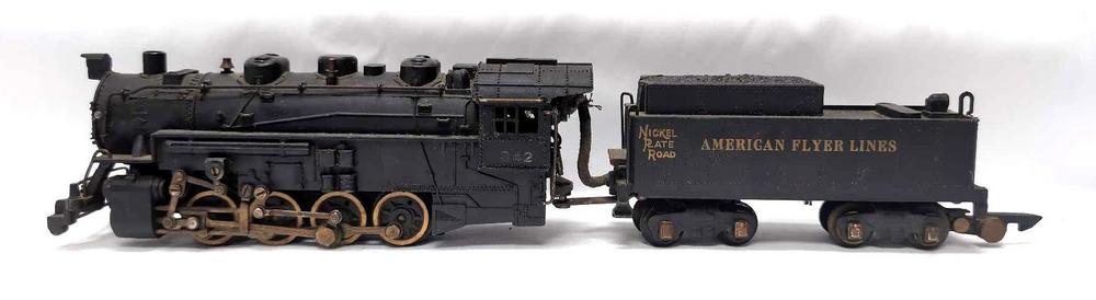 Postwar American Flyer S Gauge 342 NKP Nickel Plate Road 0-8-0 die-cast steam switcher and tender. Train appears to be coated in oil or grease that has browned. Train looks really nice C6+, should clean to look better.