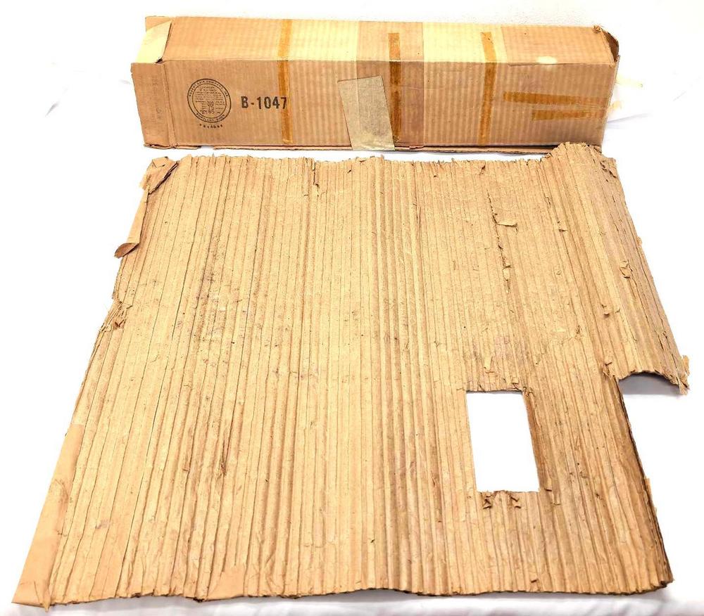Postwar American Flyer S Gauge 322AC Hudson Loco & Tender with Choo Choo & Smoke, original box and wrap. Wrap has chipping to edges, some loss of surface from tape removal, missing one small section. Box is mis-shapened, older masking and clear tape, no torn or missing flaps, very solid, light wear.
