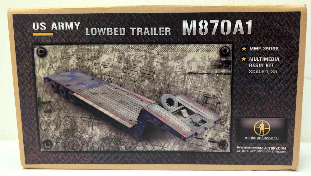 DescriptionminimanFactory 1/35th scale 35008 U.S. Army M870A1 Lowbed Trailer, multimedia resin kit, NIB. This is an open box, sealed bag kit with all parts accounted for and an original instruction sheet and other literature, as seen in the photos. Please view photos carefully as these items are sold as shown in our photos with no refunds or returns.