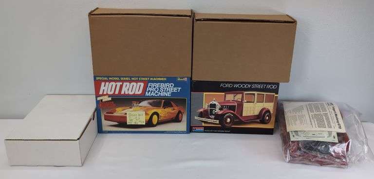 Collection of assorted vehicle model kits including AMT '66 Corvette Sting Ray 6926, two 7154 Folgers Mustang GTO, 2962 Ford Bronco 4x4, AMT Mach 1 Mustang 1971 T114 and a couple Humvee vehicle kits. Kits contain parts on sprue in factory sealed bags, parts on sprue out of bag, loose parts. Some include instructions, some include decals.. Some have missing instructions, decals, etc. None are in original or correct box.
