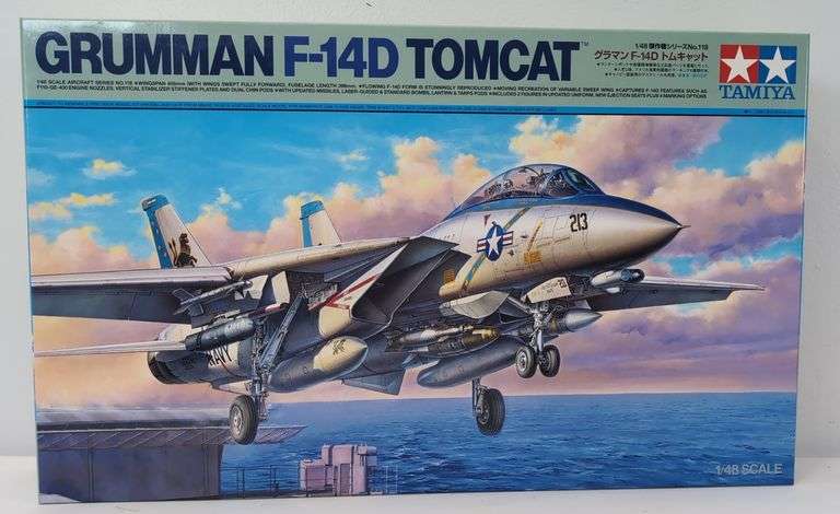 This auction is for a Tamiya 1/48 scale model kit of the Grumman F-14D Tomcat. The kit includes numerous parts still sealed in their original packaging, decals, and instruction manual. This model is perfect for aviation enthusiasts and model builders alike. Kit appears complete containing parts on sprue in factory sealed packaging, Eduard FE933 F-14D 1/48 for Tamiya kit, photo-etched parts, decals, literature, instructions, etc. Box shows no wear, bright, clean, square and solid.