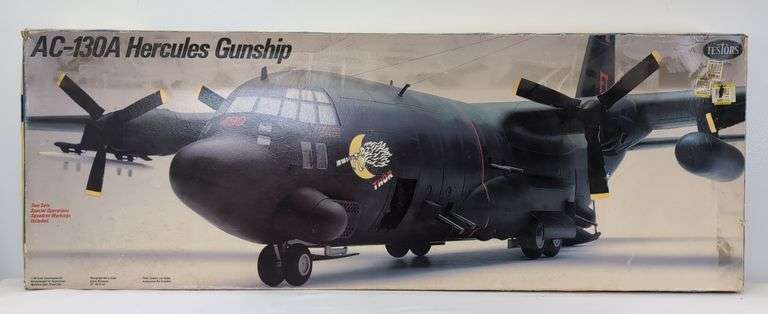 Up for sale is a Testors Italeri Lockheed AC-130A Hercules Gunship model kit, 596 1/48 scale. Un-assembled open box kit appearing complete containing parts on sprue in factory sealed bags, literature, instructions, decals, etc. Box has some light corner wear, sun fading, clean, square and solid.