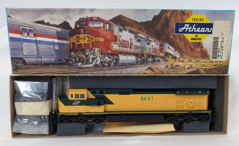 Athearn 4965 HO scale C44-9W Dummy Locomotive model train. The engine is numbered 8627 and is in the Chicago and North Western livery. Train looks C9-10. Box is bright, clean, square and solid with excellent styrofoam. Unattached trim and literature included.