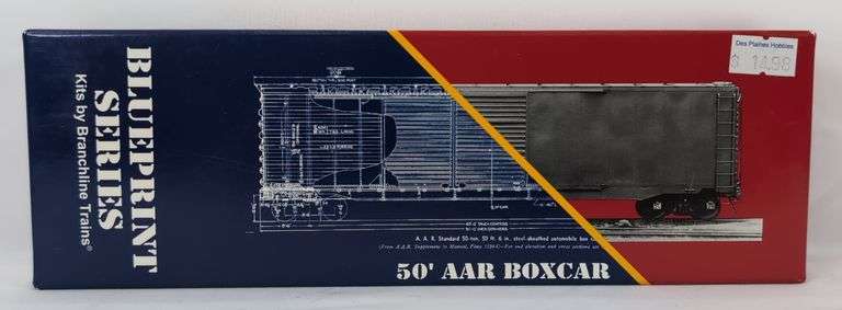 Branchline Trains Blueprint Series HO Scale 1101 50' AAR Boxcar kit, Double Door, Chesapeake & Ohio car #28356, built 1955. Delivery scheme boxcar red, black ends, white lettering. Kit is unassembled C9-10. Box shows no wear.