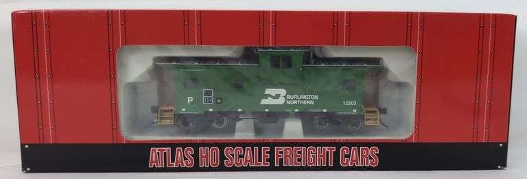 Atlas HO Scale model train freight car No. 1901-2; Extended Vision Caboose, Burlington Northern car number BN 12203 in original box. Train looks C9-10. Box shows no wear.