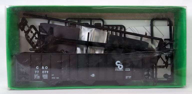 Bowser HO Scale No. 550102 Chesapeake and Ohio 100 Ton 45' 3 Bay Hopper Kit, car number C&O #77079. Kit is complete and unassembled Mint C10 in a factory sealed original box. Box shows no wear.