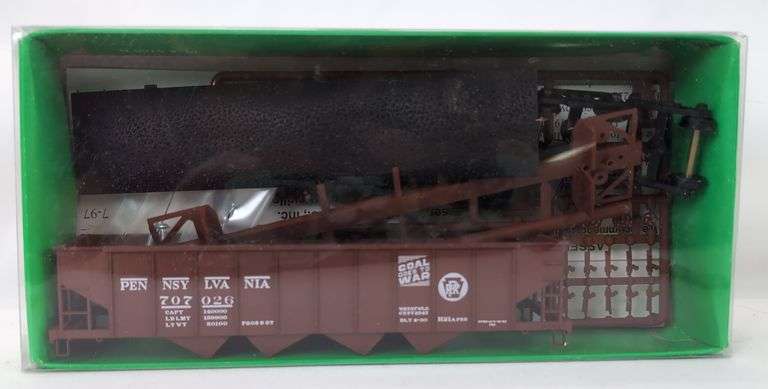 Bowser HO Scale No. 54061 Pennsylvania H-21a 4-Bay Hopper PRR Circle Keystone 'Coal Goes to War' car number 707026, complete and unassembled Mint C10 in factory sealed original box. Box shows no wear.