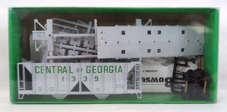 Bowser HO Scale No. 55612 Central of Georgia 70 Ton 2 Bay Covered Hopper car number 1339, complete and unassembled C9-10 in original box. Box shows no wear.