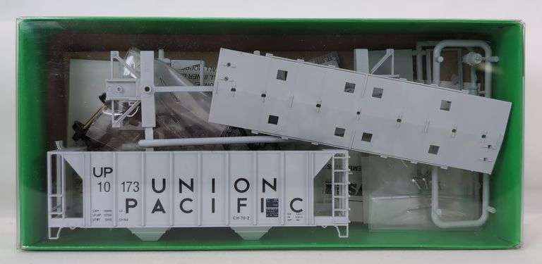 Bowser HO Scale No. 56132 Union Pacific 70 Ton 2 Bay Closed Covered Hopper model kit, road number UP 10173 complete and unassembled Mint C10 in factory sealed original box. Includes McHenry KS couplers. Box shows no wear.