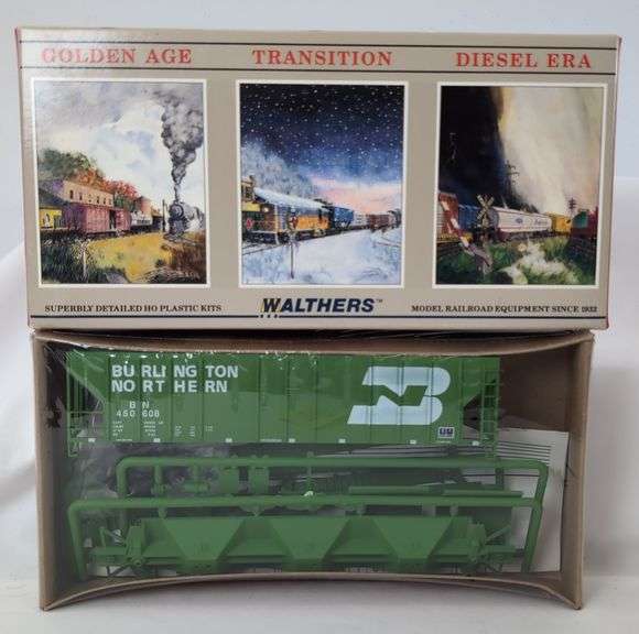 Walthers HO Scale model train kit No. 932-5702 Burlington Northern PS-2CD 4427 Covered Hopper car number BN 450608 complete and unassembled Mint C10 in factory sealed original box. Box shows no wear.