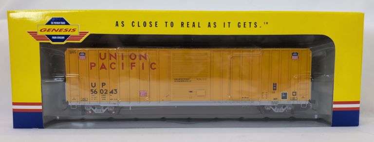 Genesis HO Scale No. OG4051 Union Pacific 60' FMC OB-10' door box car number UP 560243 in original box. Train is Mint C10 in factory sealed original box. Box is bright, clean, square and solid.