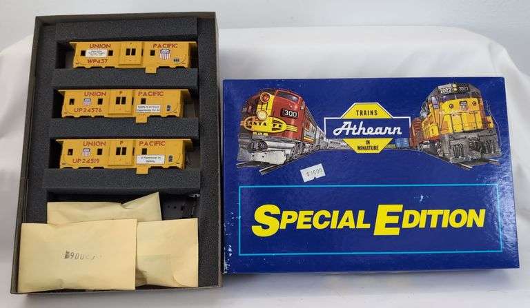 Athearn HO Scale No. 2305 Special Edition trains in miniature. Bay Window Caboose Set - Union Pacific, complete and unassembled C9-10 in original box. Box shows little wear. Road numbers WP 437, UP 24576 and UP 24519.