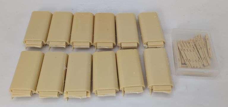 Lot of Twelve HO Scale highly detailed resin cast diesel locomotive fuel tanks plus a small clear container of unmarked parts. Entire lot is unmarked, new and unused.