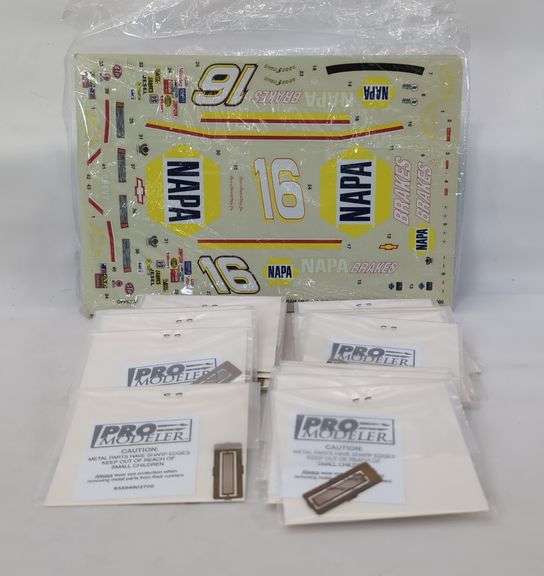 Forty-eight sheets of NAPA Supertruck #16 decals by Revell-Monogram, dated 1997 for kit No. 852519. Officially licensed by NASCAR. Ron Hornaday Jr. was the driver. Sheets are all uncut and undamaged, none are stuck together and all should be 100% usable. Twenty-five Revell/Monogram ProModeler photo-etched metal parts packages for 855946, '69 Dodge Charger Daytona 1/25th scale kit. All packages are factory sealed.