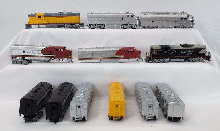 Athearns and other unmarked HO scale, diesel locomotives; A and B units in Burlington Route, Union Pacific, Santa Fe, and Baltimore and Ohio livery as well as silver units with no decoration. Five units are powered, rest are dummy. Some units are missing parts, some missing trim, some loose truck assemblies included. Perfect for collectors or those looking to expand their model train collection. Please view the photos of the items in this lot very carefully as they are being sold as shown in our photos with NO refunds or returns.