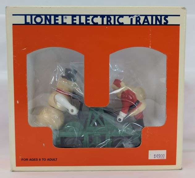 Lionel O Gauge 18422 Santa & Snowman handcar in original box with instructions, C7++ some fading to white. Box shows little wear, square and solid with price sticker.