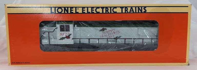 Lionel O Gauge 18827 Christmas RS-3 road switcher diesel locomotive in original box with instructions and literature, C8 light run time. Box shows little wear. Bright, clean, square and solid.