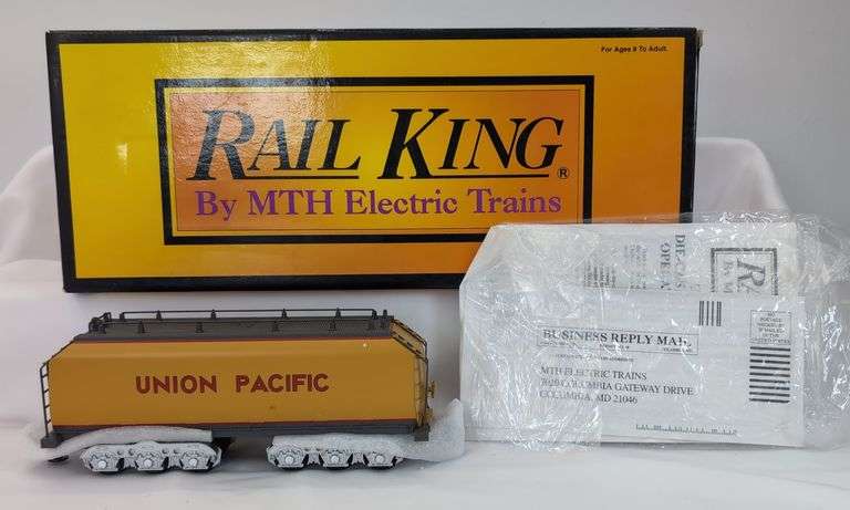 MTH Rail King 30-1130 Union Pacific auxiliary tender in original box, beautiful C8 with very light run time. Box shows little wear, bright, clean, square and solid. Original instructions and literature included.