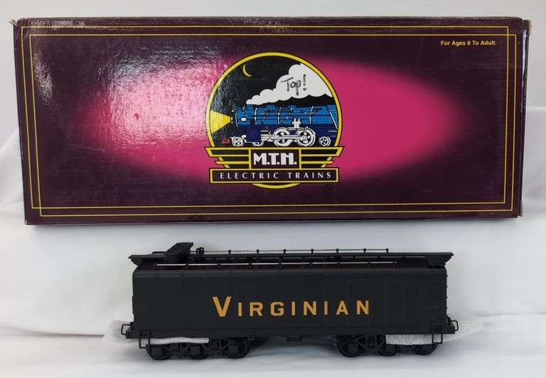 MTH O Gauge 20-3095-3 Virginian auxiliary water tender II in original box, excellent styrofoam. Train looks perfect C8 with run time. Box shows little wear, bright, clean, square and solid.