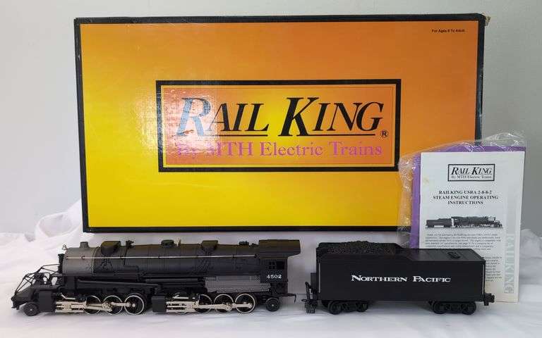 MTH Rail King O Gauge 30-1157-1 Northern Pacific 2-8-8-2 USRA Mallet steam locomotive and tender with ProtoSound in original box with literature, C8 light run time. Box shows little wear, bright, clean, square and solid.
