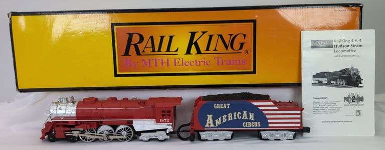 MTH Rail King O Gauge 30-1234-1 Circus 4-6-4 Hudson steam locomotive and tender with ProtoSound 2.0 in original box, perfect C8 run time. Box shows little wear, bright, clean, square and solid.