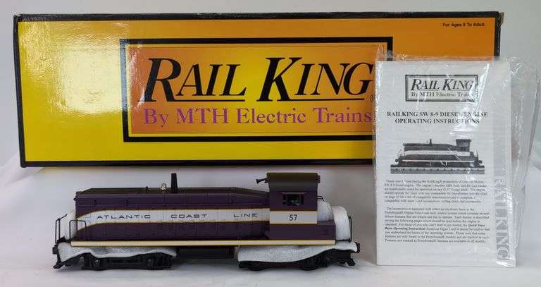 MTH Rail King O Gauge 30-2146-0 Atlantic Coast Line SW-8 diesel switcher cab number 57 with horn in original box with instructions, C8 run time. Box shows little wear, bright, clean, square and solid.