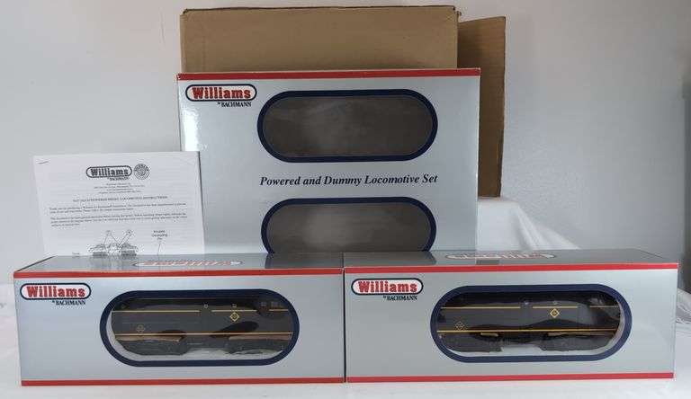 Williams O Gauge Item #20096 O-27 Erie Alco AA diesel locomotive powered and dummy units in original boxes with shipper. Trains look gorgeous C8 very light run time. Styrofoams show little wear. Boxes show little wear. Shipper shows minor wear and tear, square and solid. Trains include instructions/literature.
