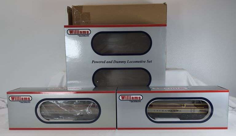 Williams O Gauge Item #20711 Lackawanna F-7 AA powered and dummy diesel locomotive units set in original boxes with shipper. Trains look gorgeous C8 with very light run time. Boxes show little wear. Shipper shows very light wear, square and solid.
