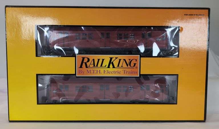 MTH Rail King O Gauge 30-2392-3 MTA Redbird R-17 2-car add--on non-powered Subway set in original box. Trains look fantastic C8, very light run time. Styrofoam shows little wear, box shows little wear, couple corner dings. Box is bright, clean, square and solid.