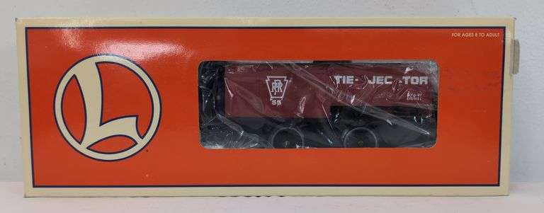 Lionel O Gauge 18427 No. 58 Tie-Jector car in original box with instructions and literature. Train looks C8, run time. Motorized unit is missing all ties. Box shows a scuff at one end flap fold. Box is bright, clean, square and solid.