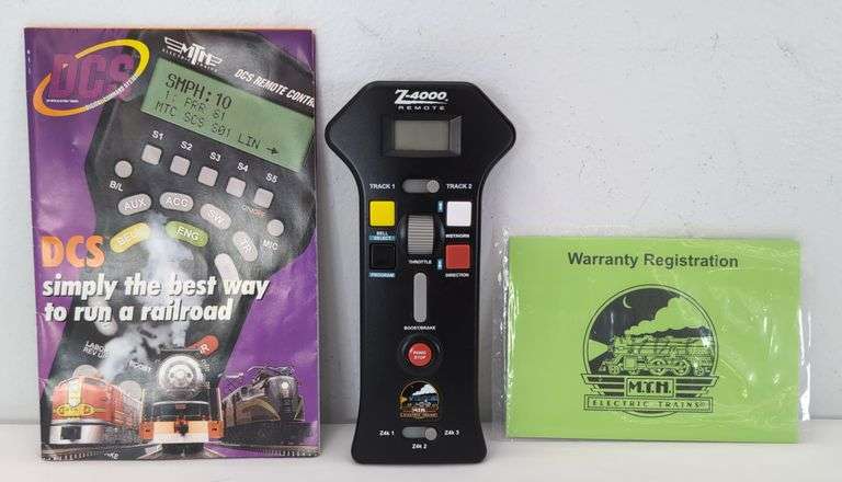 MTH Z-4000 remote control with literature. Unit looks C8, some battery terminals have tarnish and battery corrosion. Sold as shown in photos with no returns.