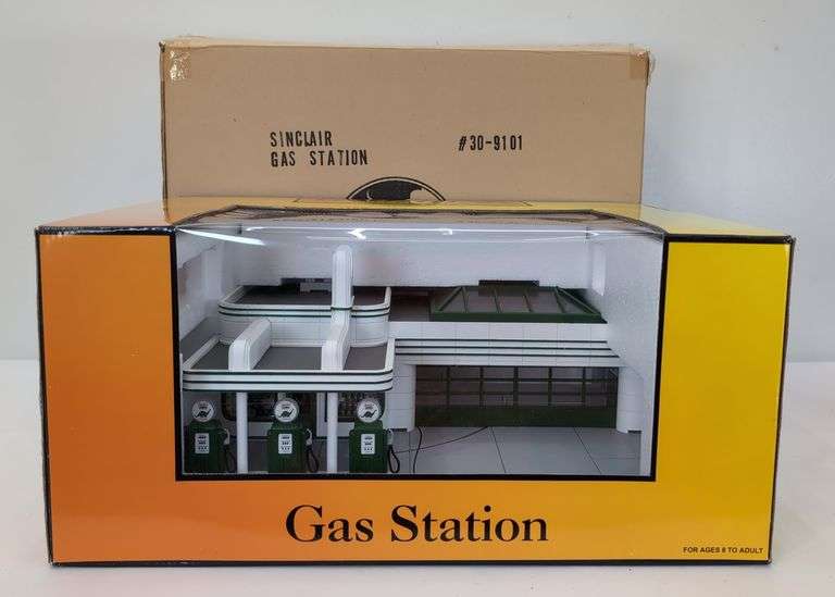 MTH Rail King O Gauge 30-9101 Sinclair Gas Station in original box with shipper, C8 displayed. Box shows little wear, bright clean square and solid. Shipper shows no wear, square and solid.