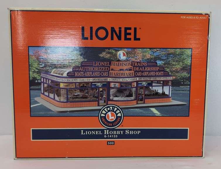 Lionel O Gauge 14133 Lionel Hobby Shop 500 in original box, displayed C8. Box shows a little minor wear and tears, bright, clean, square and solid.