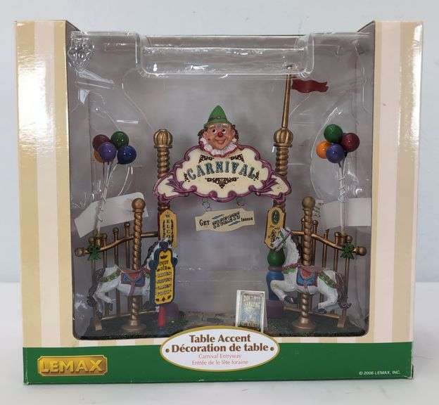 Lemax Village Collection 9108044 Carnival Entryway in original box, displayed C8. Box shows little wear, bright, clean, square and solid.